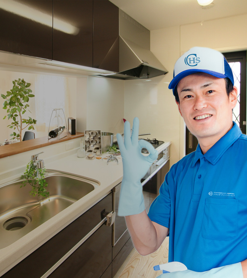 ハヤシダクリーンサービスのハウスクリーニングは、清掃のプロが専用な洗剤や清掃器具を使って住居内の清掃を行うサービスです。一般家庭で日常的に行う掃除とは、作業プロセスや汚れを落とす技術などがまったく異なります。